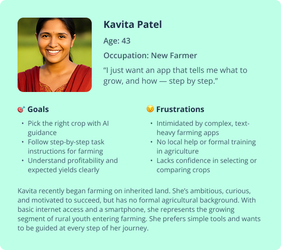 • Empowerment from Day 1: New farmers like Kavita could make informed crop decisions without needing to “ask around”